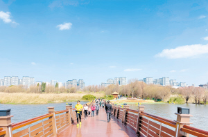 東風壩整治修復工程位于滇池草海北片區(qū),北接新運糧河旁的環(huán)滇池綠道,西通高峣立交王家堆濕地。工程道路全長3450米,步道寬2米至4米。其中,七孔浮橋長130米,橋面寬3.6米,結(jié)構(gòu)為鋼結(jié)構(gòu),設(shè)計取意源于昆明古八景之一的“云津夜市”,靈感來自昆明??诖ㄗ珠l橋墩,保留了古典橋梁的美感。連接七孔浮橋與環(huán)滇池綠道的生態(tài)走廊,新建照明和監(jiān)控系統(tǒng),沿線設(shè)置避雨亭、景觀石、石籠坐凳和木樁坐凳等便民設(shè)施,提升了景觀效果,方便游客休閑觀光。