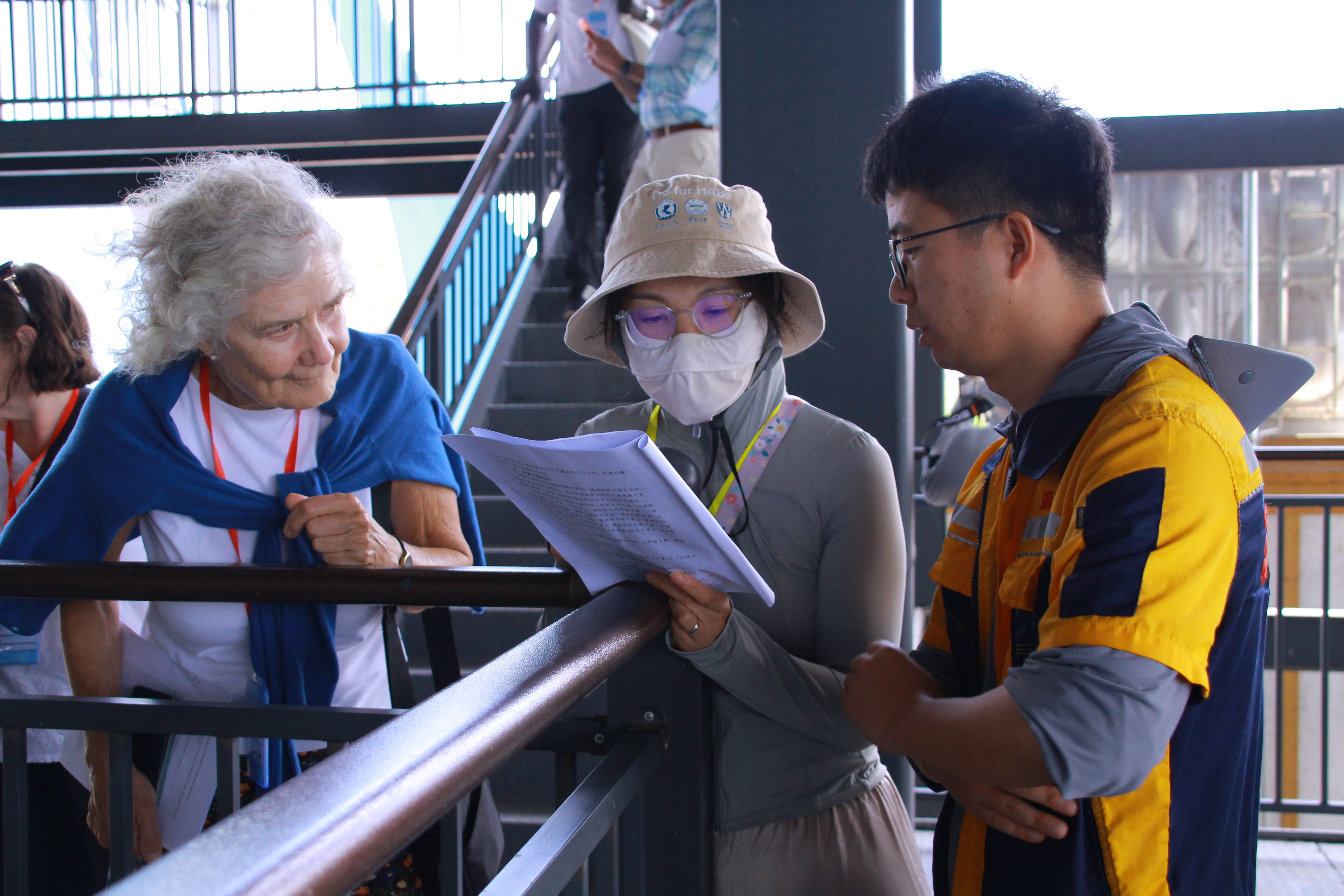 在蝦壩河藻站,專家組從進(jìn)水到出水參觀了藻站的全運(yùn)行流程,湖泊公司工作人員就湖面軟圍隔藍(lán)藻攔截導(dǎo)流+藻水汲取輸送+一級(jí)處理(混凝、淺層氣浮)+二級(jí)處理(混凝、平流氣浮)+微粒過(guò)濾等藻站運(yùn)行原理向?qū)<医M進(jìn)行了詳細(xì)介紹、對(duì)專家組提出的問(wèn)題進(jìn)行了詳細(xì)解答,并與專家組就世界范圍內(nèi)藻華防治遇到的困難和有效解決方法進(jìn)行了深入交流。